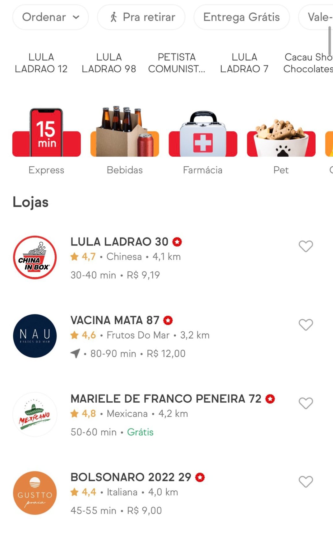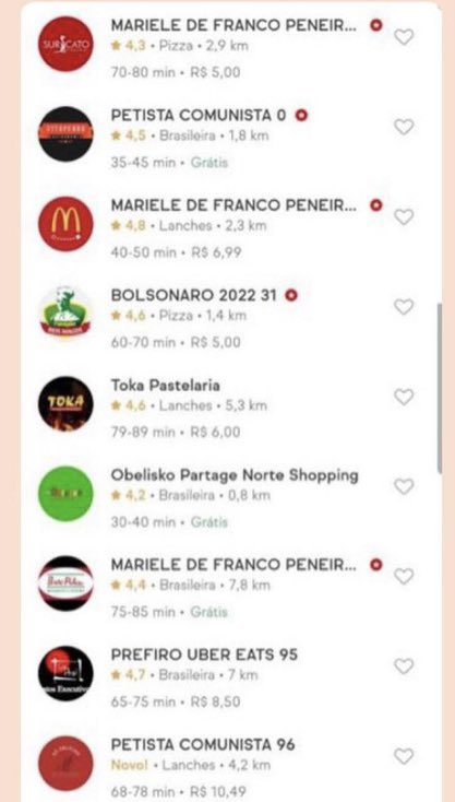 Alguns estabelecimentos tiveram nomes alterados para: "Bolsonaro 2022", "Vacina mata", "Lula Ladrão", e outros nomes de apoio a Bolsonaro e ofensas a outras figuras políticas.