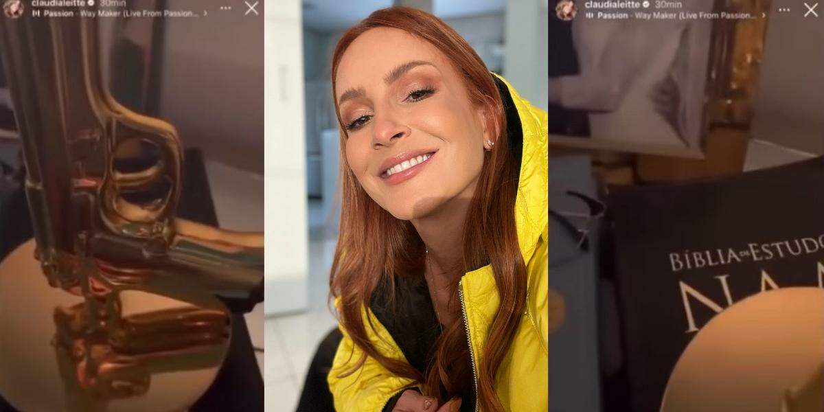 O nome da cantora Claudia Leite, que muitas vezes se disse evangélica, chegou a figurar como um dos mais comentados do Twitter nesta Quarta - Feira,(14). O motivo foi um vídeo onde a cantora mostrou a replica de uma pistola sobre uma bíblia, e a foto dela com seu marido.