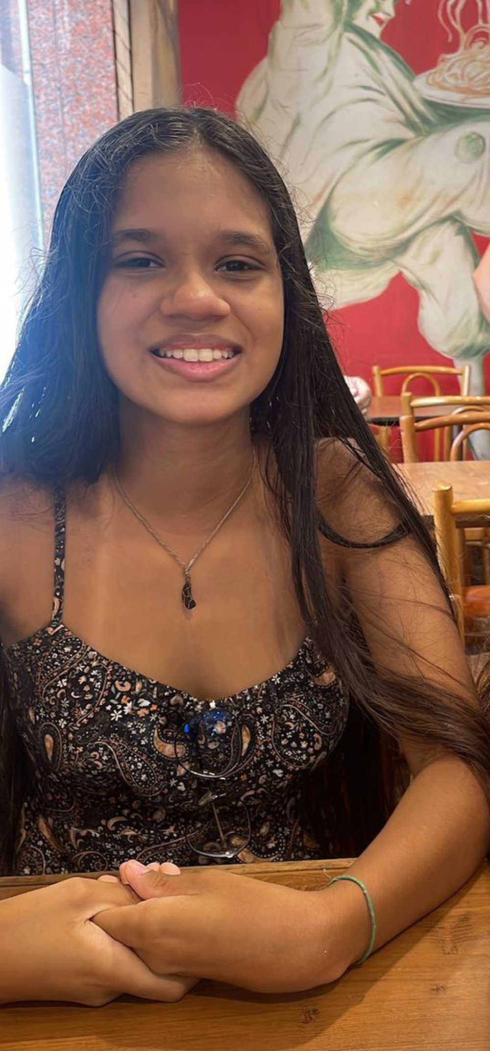 Entre 14h e 15h, quando a mãe chegou à residência, não encontrou a filha. Um vizinho relatou ter visto a adolescente saindo de casa usando um vestido bege. Desde então, o celular dela permanece desligado.